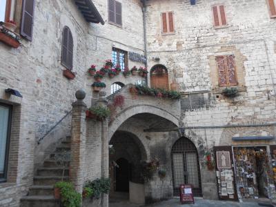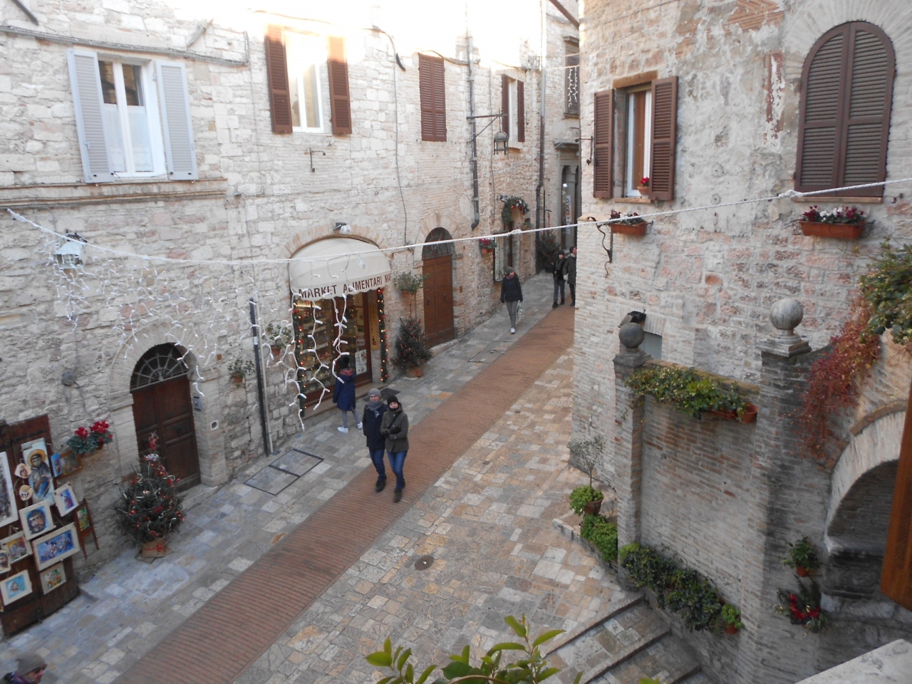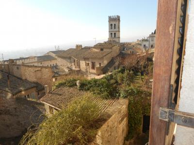 窓からはアッシジの石造りの家々と通りの景色が望めました。