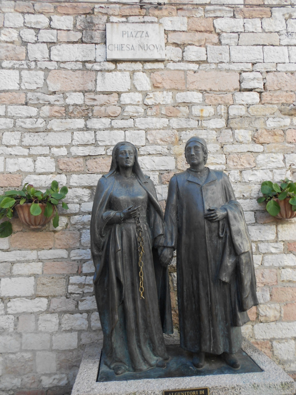 ヌオーヴァ教会前の広場に建つ2人の銅像は、世俗を捨てた聖フランチェスコの