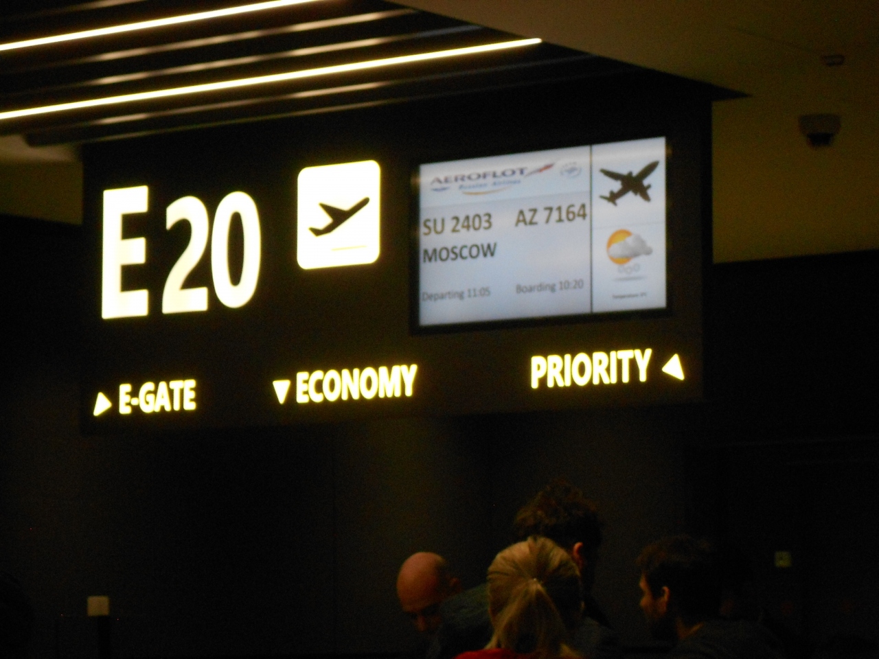 SU2403 Moscow 11:05 E20 go to Gate 4min 。搭乗ゲートへ進みます。