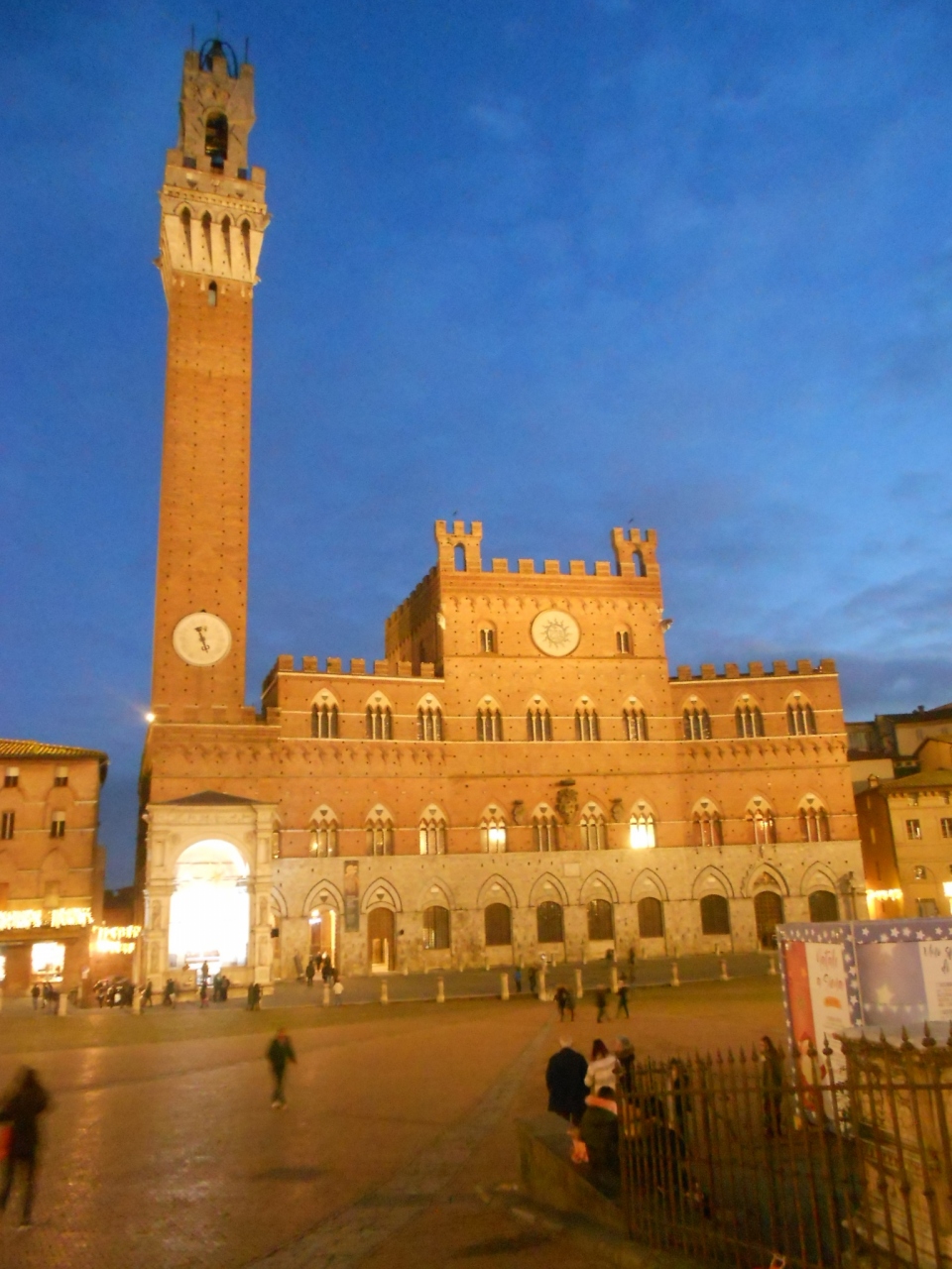 市庁舎・マンジャの塔・周囲の建物もライトアップされ、