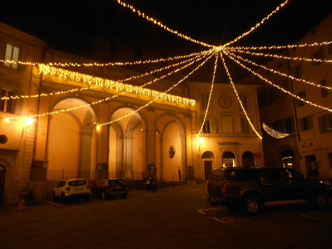 突き当りに小さな広場 Piazza Indipendenza がありイルミネーションが綺麗でした。- 旅行時期