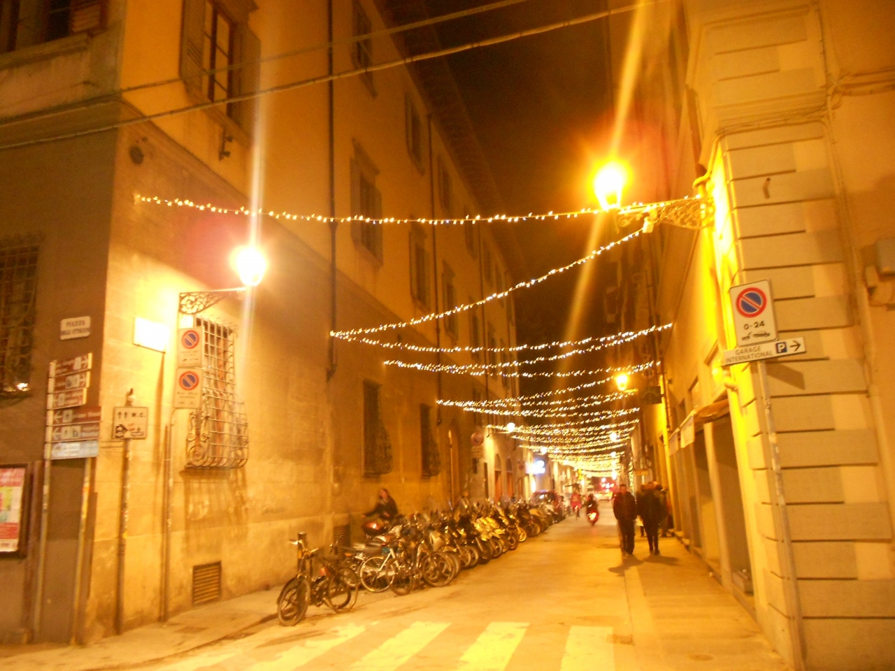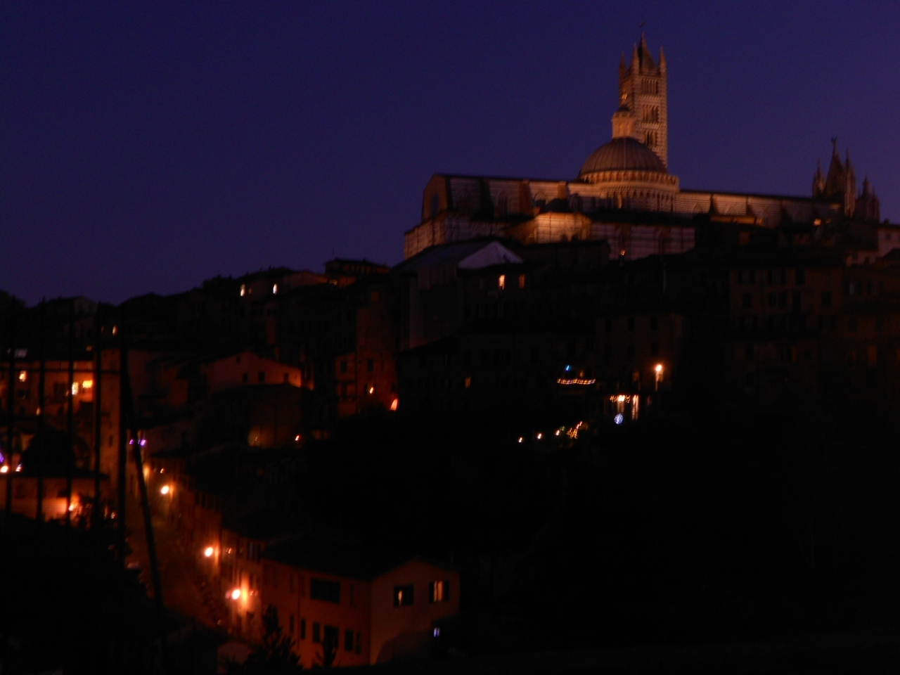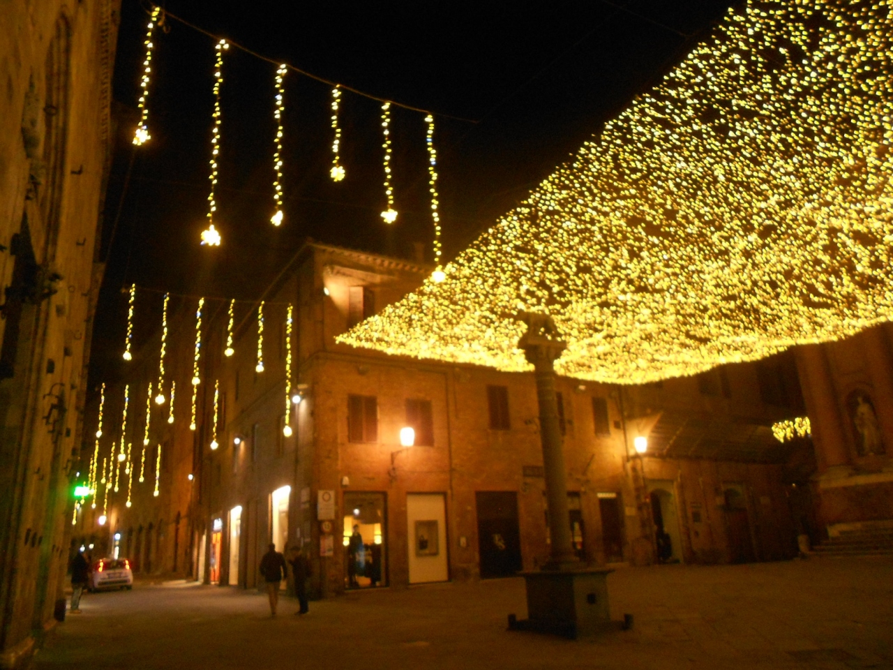 華やかなメインストリートとは異なり、シエナで暮らす人々の生活の場という感じの、穏やかで静かな小道です。両側には石造りの古い建物が立ち並んでいます。真夜中のこの小道は人通りも無く、柔らかなオレンジ色のイルミネーションの光に包まれ、まるで中世にタイムスリップしたかのようでした。