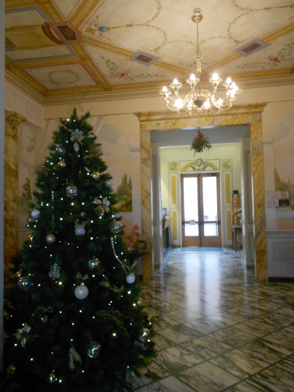 サロンの天井画が素敵な三ツ星ホテル。フロントの方も感じ良く、シエナの定宿です。