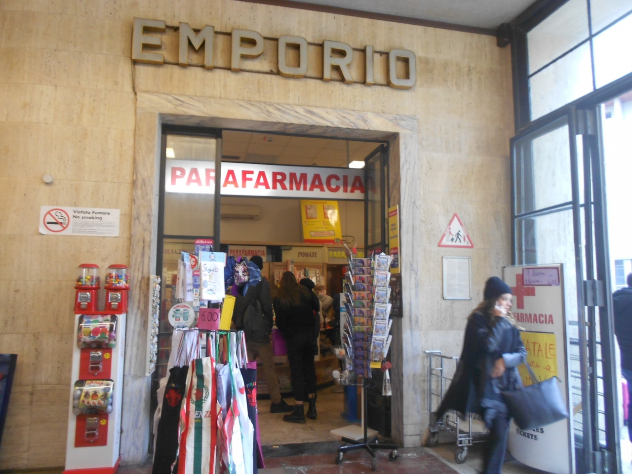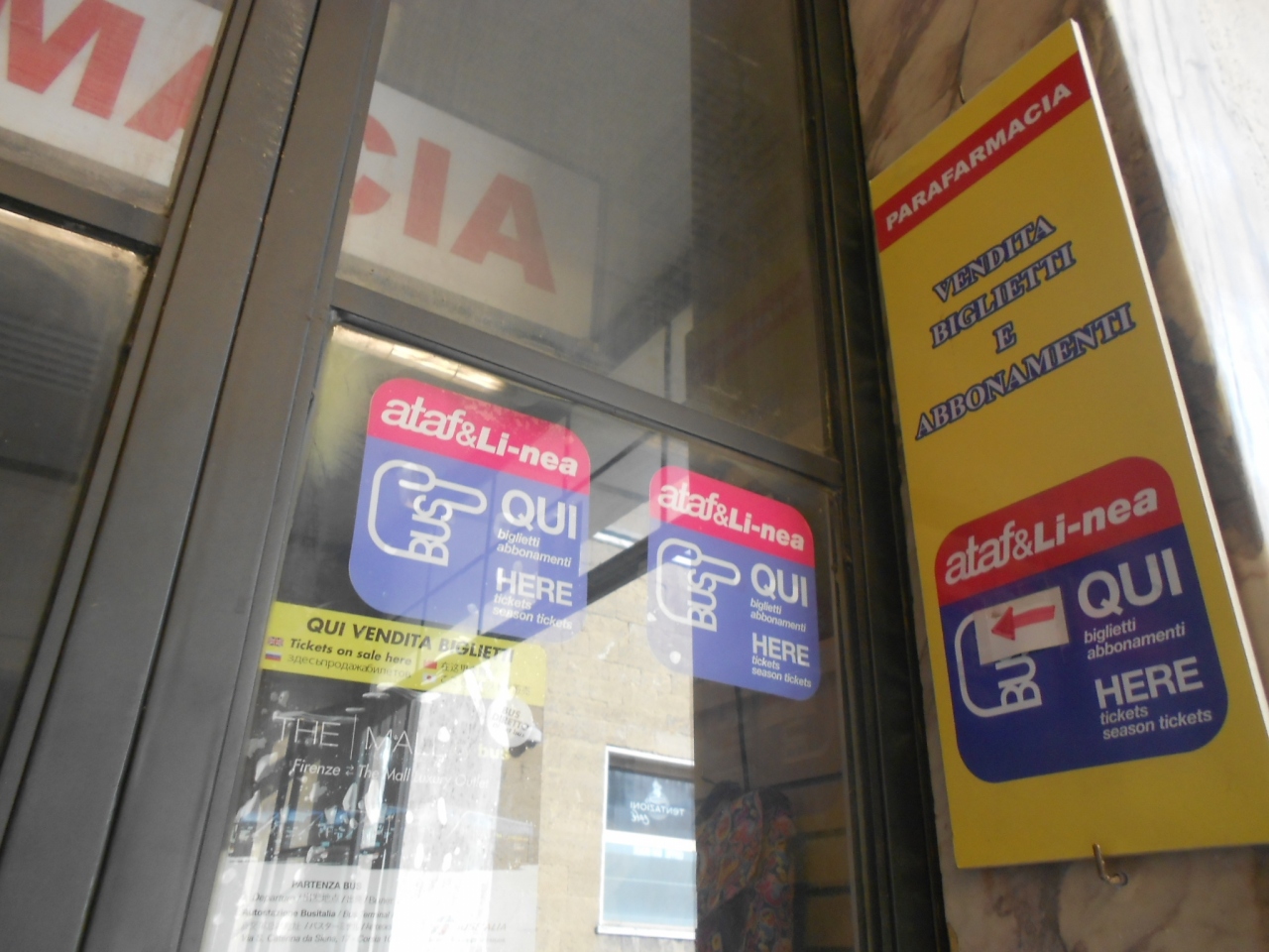 ataf VENDITA BIGLIETTI の表示があり、なぜか薬局でバスの切符が買えます。