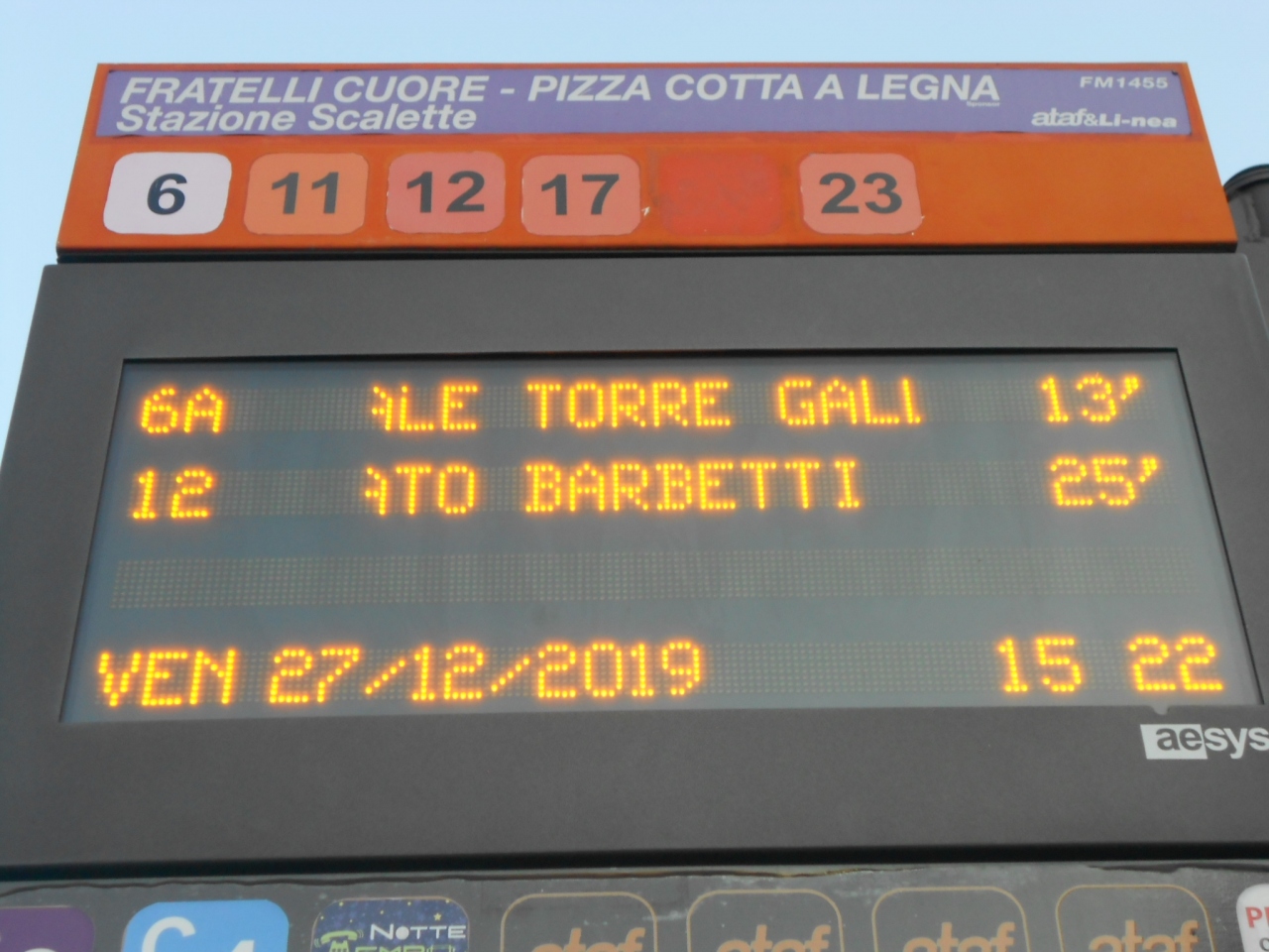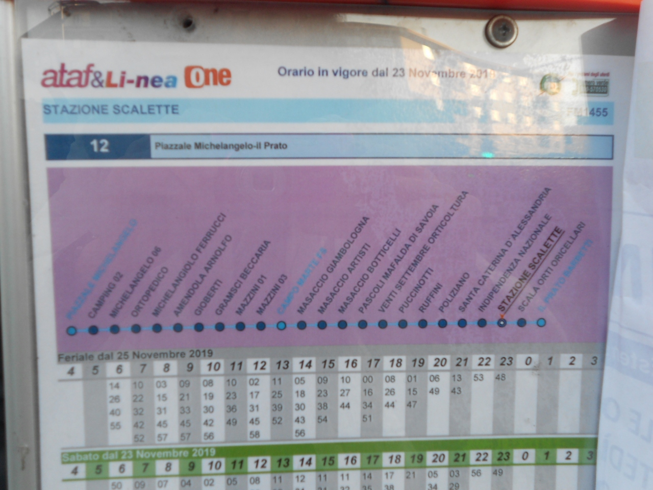 サンタ・マリア・ノヴェッラ駅前からのミケランジェロ広場行き12番のバス停が