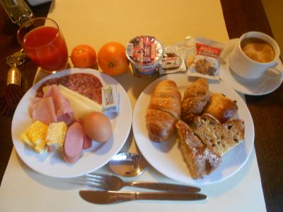 朝食ブッフェはイタリアの一般的な朝食ですがホテルメイドのクロワッサンがめちゃ美味しい。