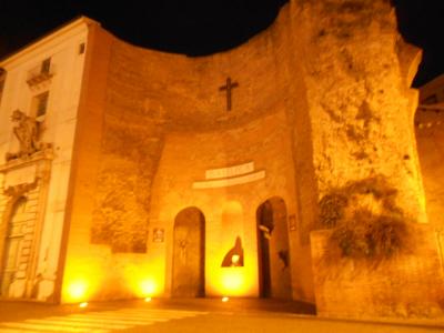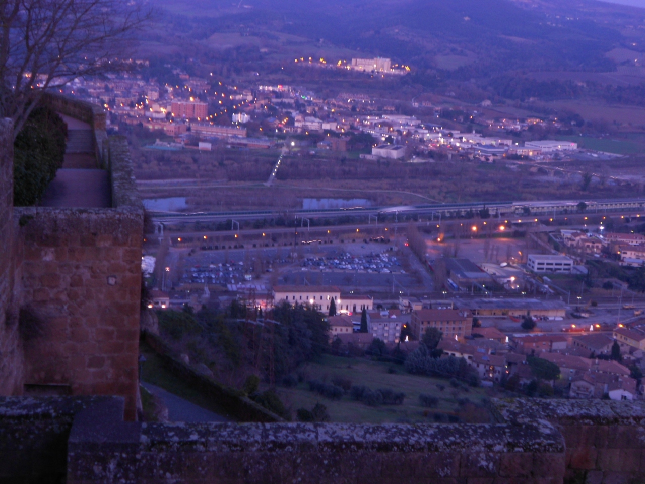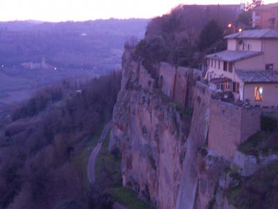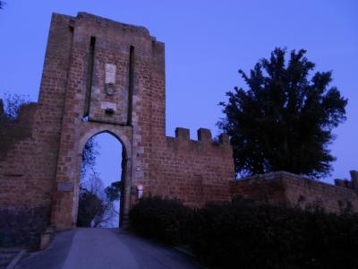 帰りに、すぐ近くに門 Porta Rocca があったので行ってみると展望台になっていました。オルヴィエートの街が高い崖の上にある様子がよくわかるので、是非行ってみて下さい。下界を見渡すと緑に囲まれた美しい街並み、そして夜景も見えました。- 旅行時期