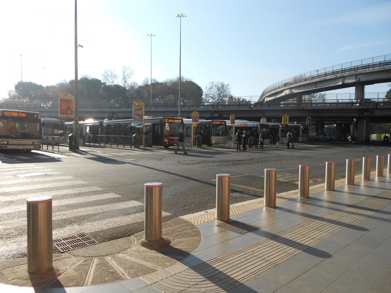 駅の左のほうにある上りエスカレーターで上へ行くと Circonvallazione Nomentana の出口に出て左にバスがたくさん停まっているターミナル発見!バスの切符はタバッキで購入。1.50ユーロ、100分有効です。
