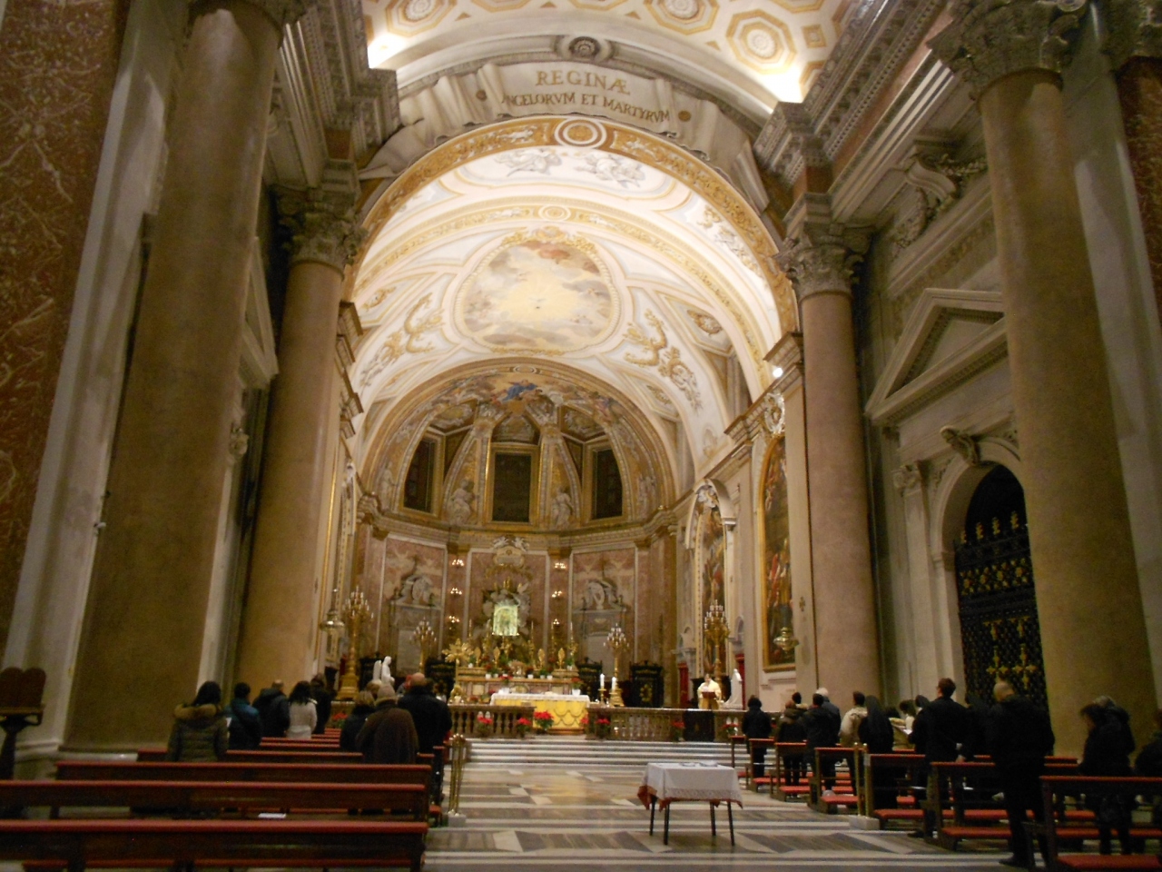 壁面にはパステル調のフレスコ画がとても美しく、ローマで一番好きな教会です。