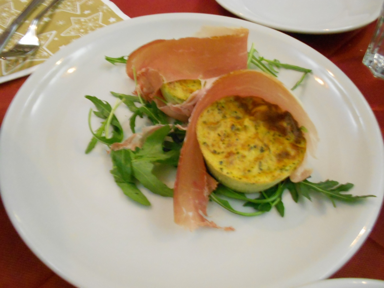 生ハムのキッシュ、きのこのリゾット、カルチョフィロマーナ、ティラミス、カプチーノを頂きました。