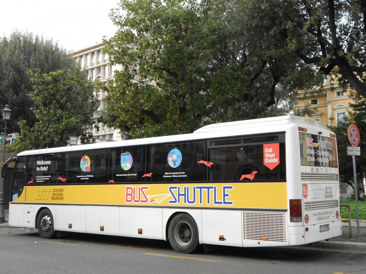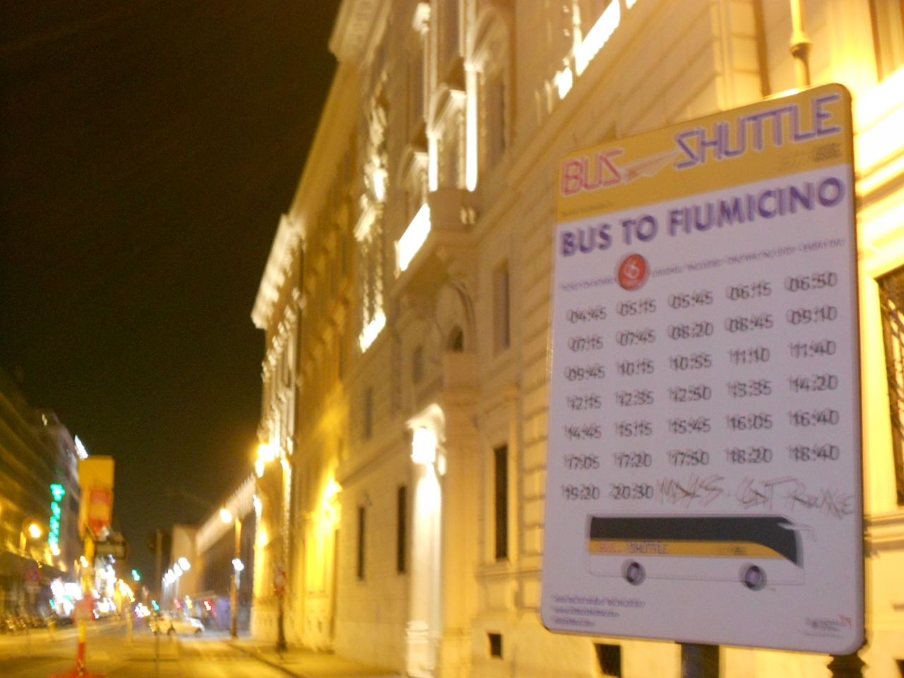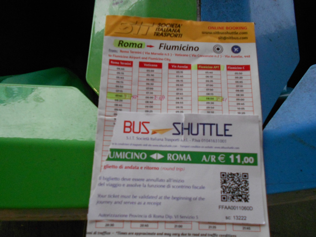 空港での乗車は到着ロビーから5分程右へ行ったバス乗り場から。右手に3社のバス会社の切符売場がありますが、私が利用したのはSITというバス会社。乗車券は売場ではなく、バスのところにいる係員から購入します。片道6ユーロ、往復11ユーロ。往復の場合は帰りも同じSITのバス限定。テルミニ駅横のマルサラ通り側に到着するのでこの会社を選びました。(ほとんどの会社は反対側のジョリッティ通り側発着)