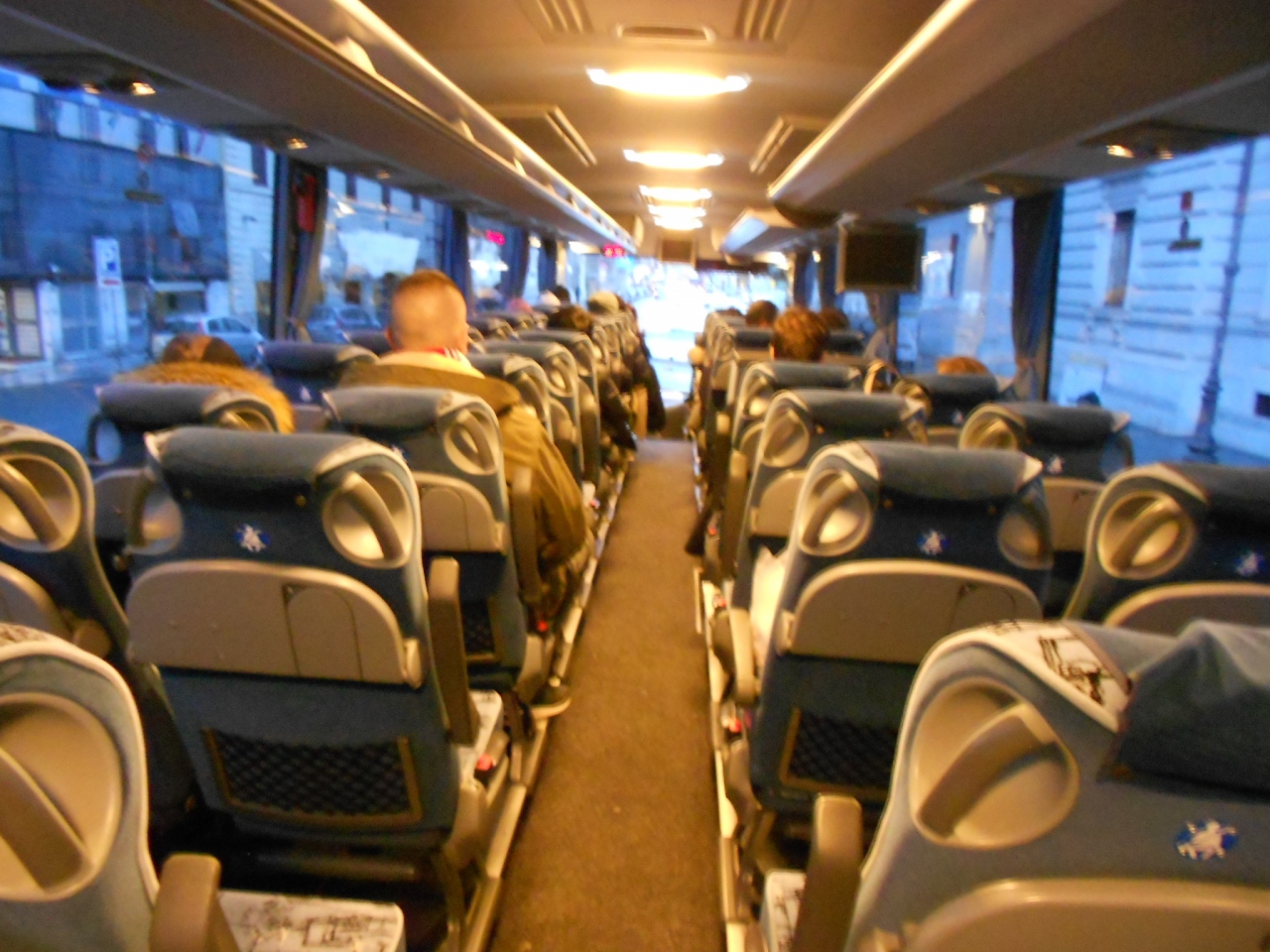 帰りは7:45発に乗車。他のバス会社は予約が必要だったりしますが、SITは予約不要なのが便利。発車5分前に行っても余裕で乗れて乗車率50%位でした。途中クレッシェンツィオ通りのバス停で乗車する人もいました。サンピエトロ寺院正面の道を通り高速に乗ります。帰りはフライトの時間があるので渋滞が心配でしたが、順調に50分位で到着しました。