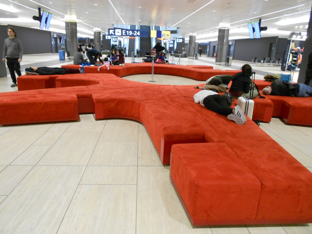 初のLCCジェットスターで利用しました。フライトが早朝なので第3ターミナルのロビーで前泊夜明かししました。ここは24時間滞在OKで、夜明かししてる人も結構いて、警備員も巡回していて女性ひとりでも平気でした。横になれるソファーもあり、冷房もよく効いていて寒いくらいでした。