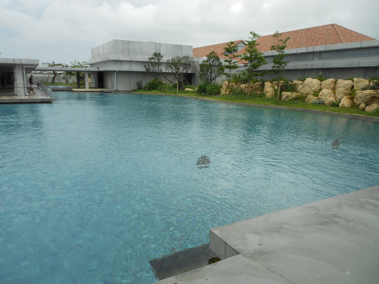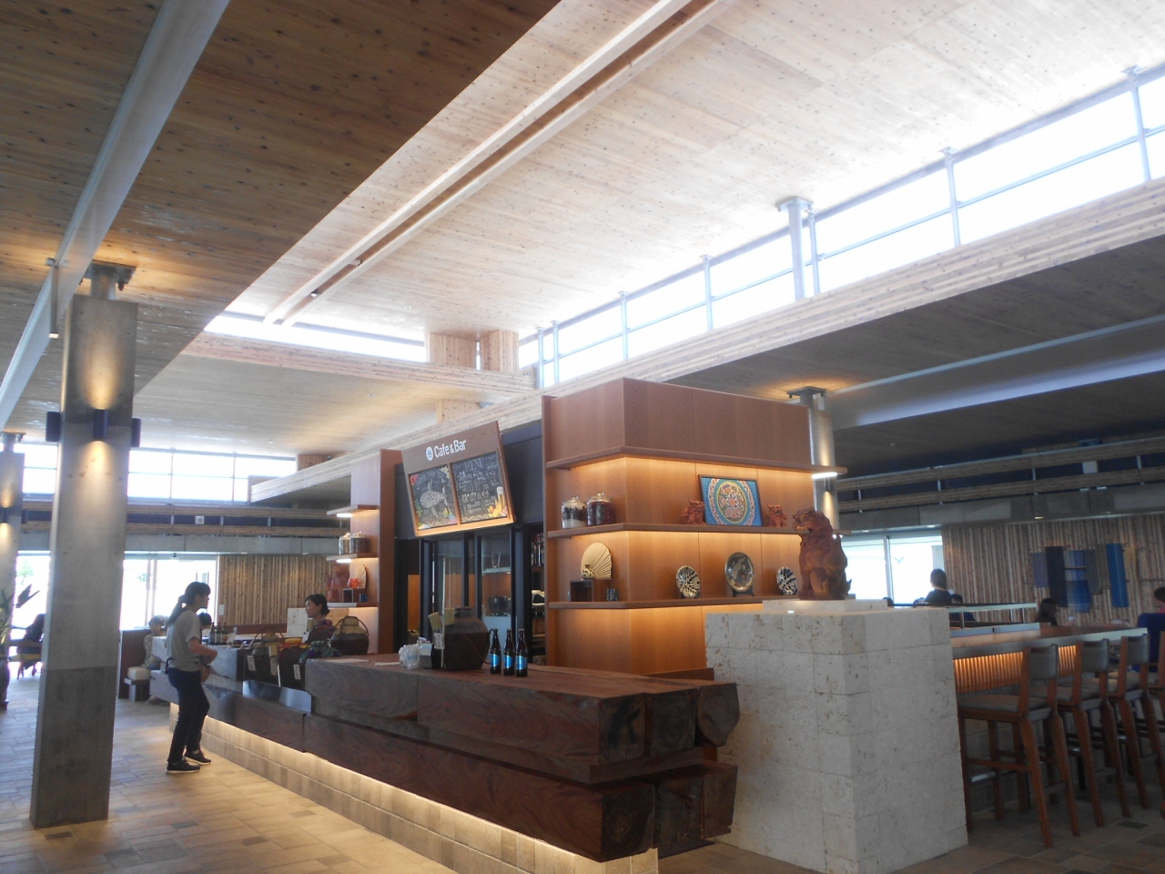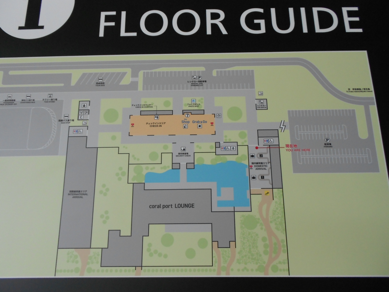 とても小さな空港ターミナル。到着・出発ロビー共に1階にあり、ホテルのプールのようなラグーンがありました。お土産ショップは品数少な目です。ちょっとしたカフェや宮古そばなどもあります。