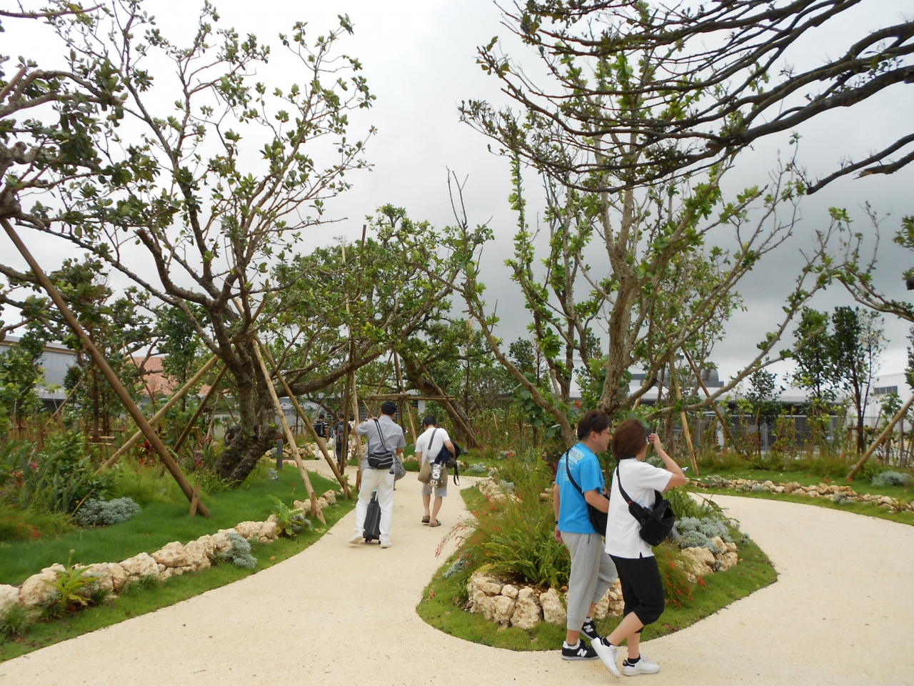 到着時は飛行機からタラップを降りて直接滑走路内に降り立ち、歩いて到着ロビーに行きます。ロビーに入る手前には植物園のような小道があって面白いです。こんな空港は見たことがありません。(笑)