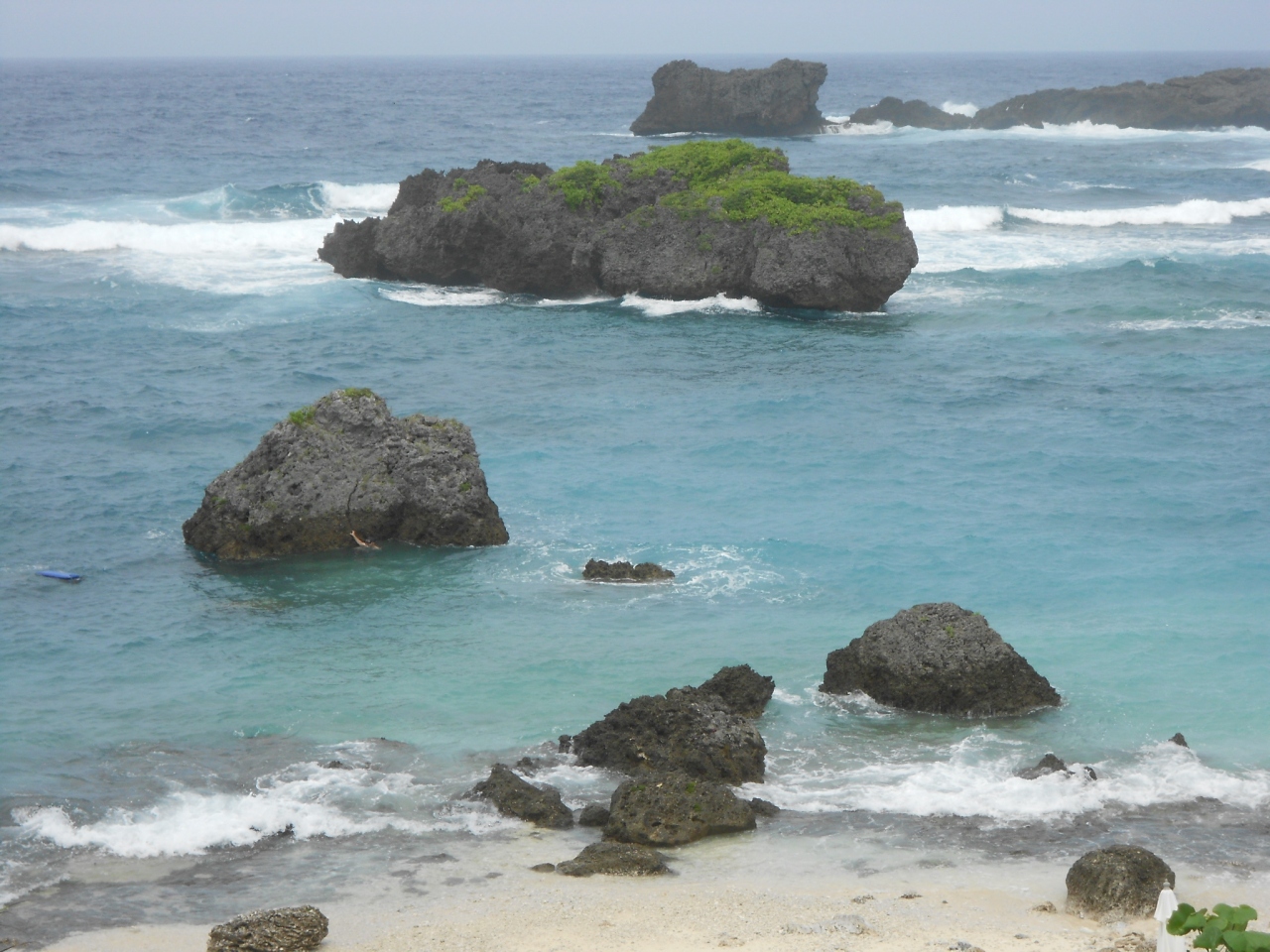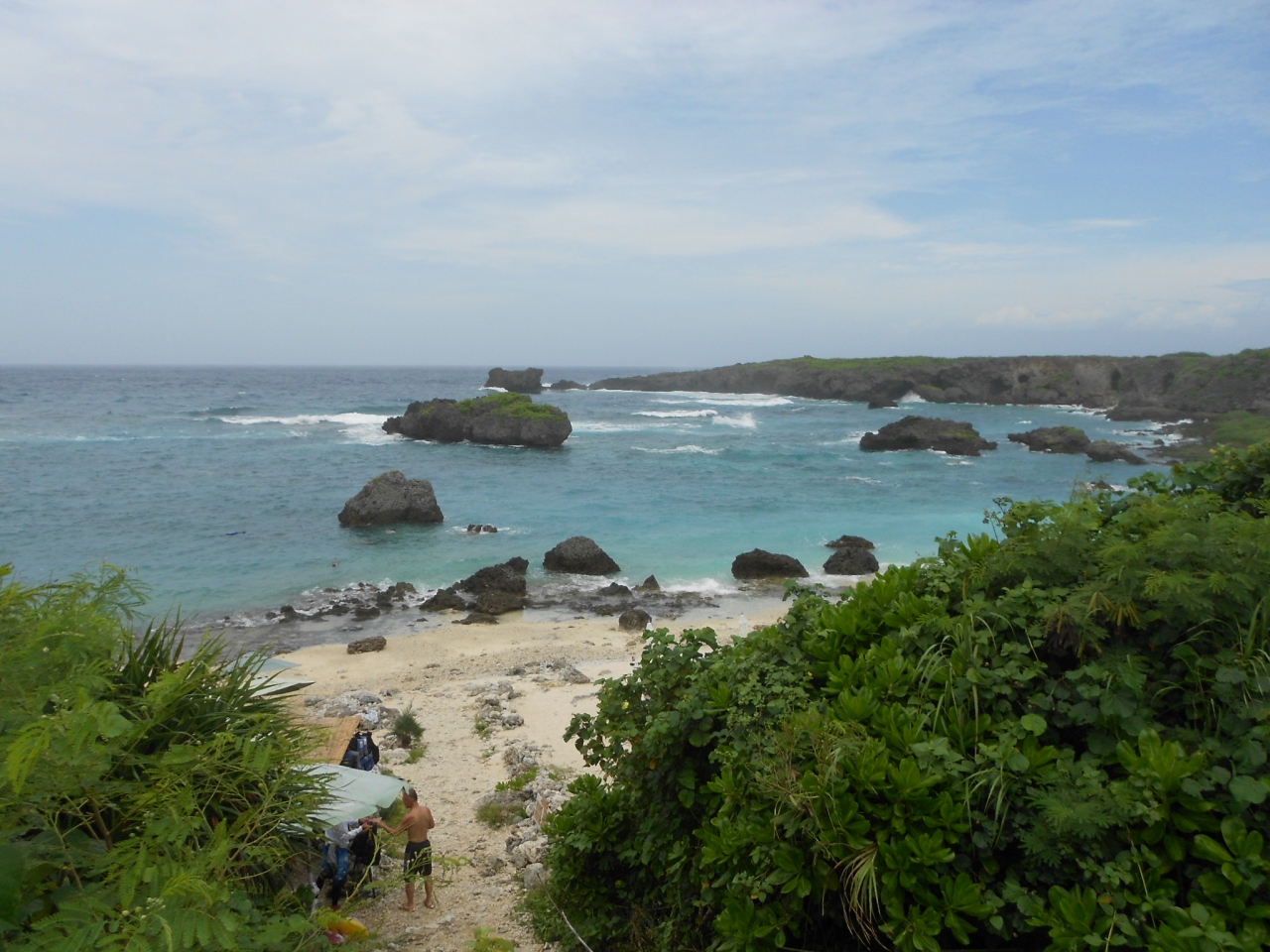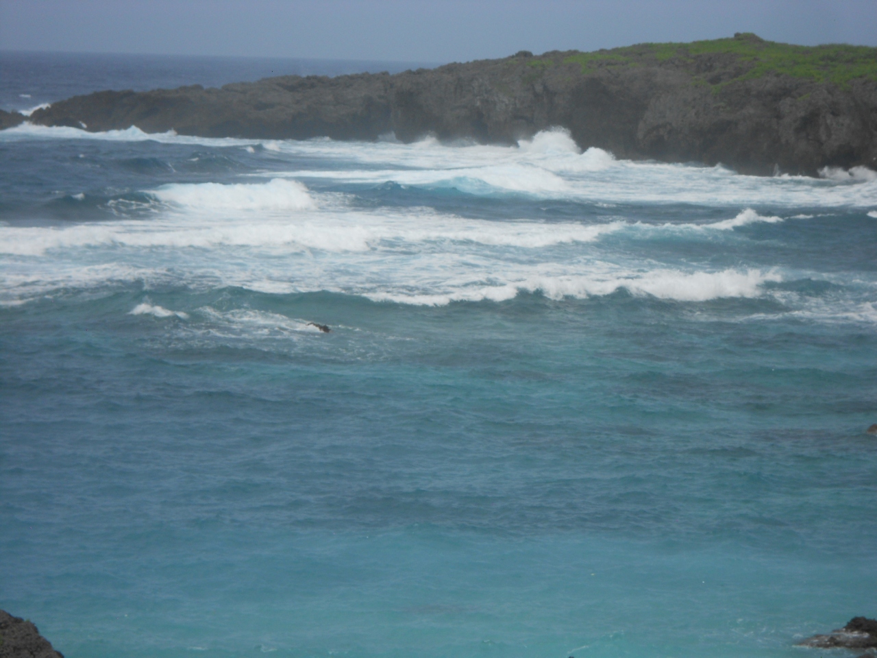 ここの海でシュノーケリングが出来るとの話を聞いて来てみたら、結構人が来ていました。この日は波があって、岩場からのエントリーに四苦八苦。大きな岩の周りを泳いでみると、海は多少の深さがあり、透明度はあるもののお魚は中の島ビーチより少なめでした。