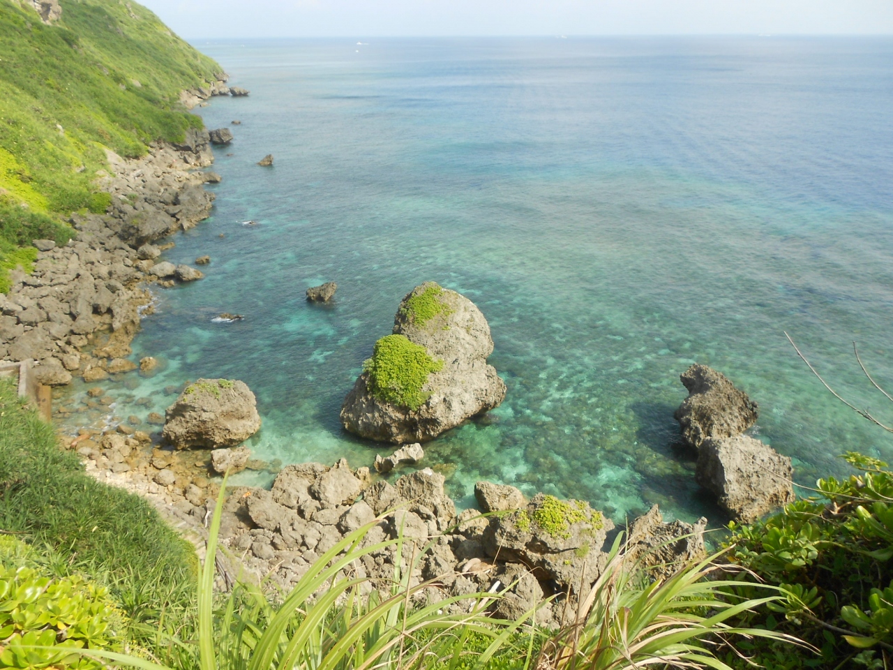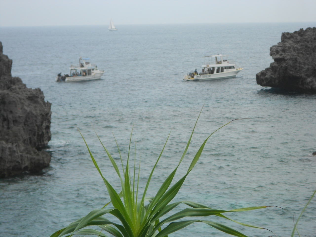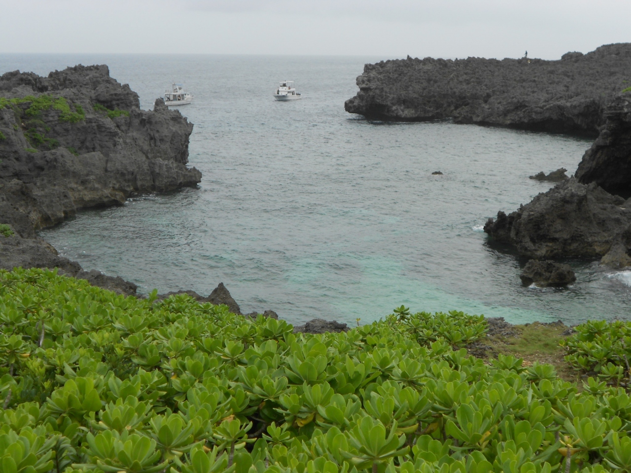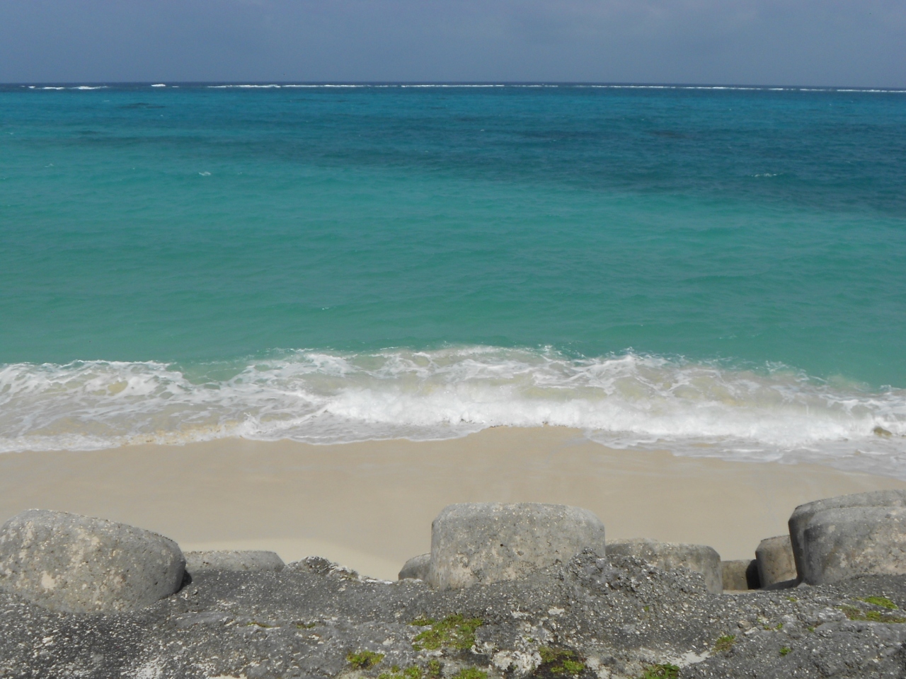 ここの海でシュノーケリングが出来るとの話を聞いて来てみたら、結構人が来ていました。この日は波があって、岩場からのエントリーに四苦八苦。大きな岩の周りを泳いでみると、海は多少の深さがあり、透明度はあるもののお魚は中の島ビーチより少なめでした。