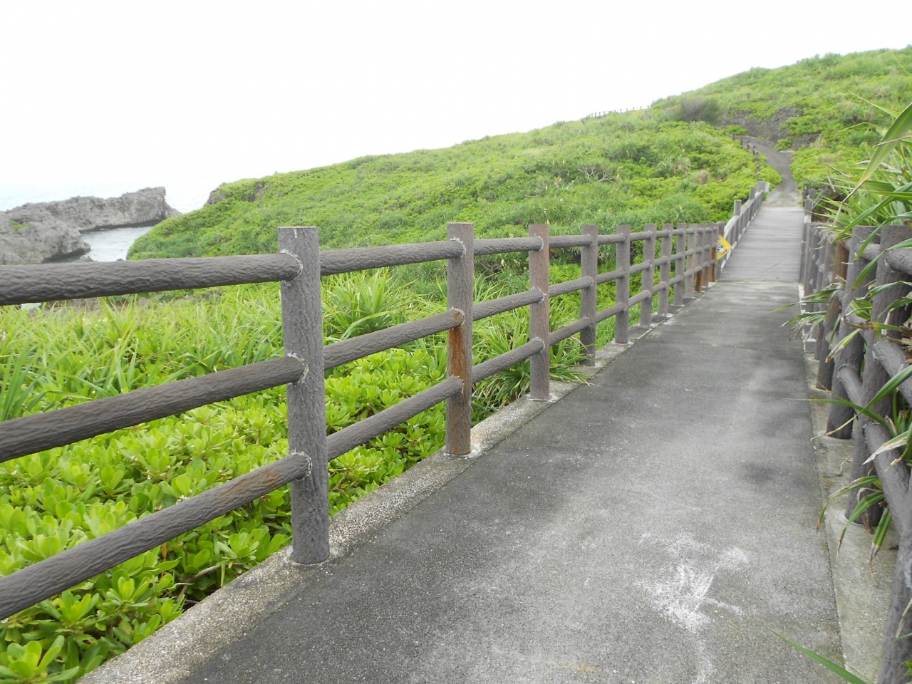案内板には、「伊良部島より東シナ海の海原を見渡すことが出来る公園。海岸沿いに遊歩道があり、東へ伸びる切り立った断崖や、美しい海岸線を楽しむことが出来る。干潮時の潮だまりでは、熱帯魚やカニ・うに等の観察も楽しめる。リーフの始まりであるため、海岸の近くまでダイビングスポットがある。」とありました。