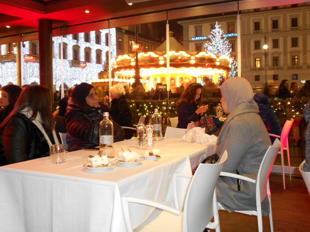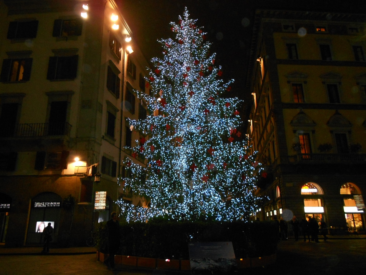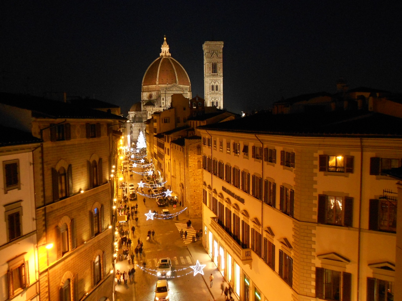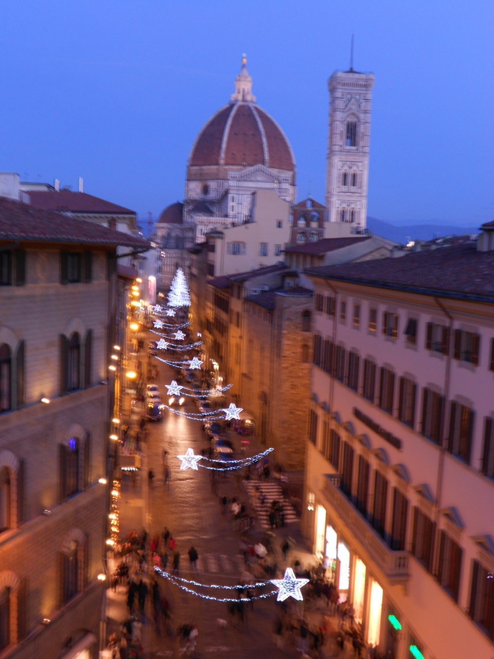 クリスマス時期のフィレンツェは、夜になると至る所にイルミネーションが飾られ、夜のお散歩がとても楽しみです。メインストリートはもちろんのこと、小さな裏通りもかわいらしいシックなイルミネーションで飾られていました。昼とはまた違った、夜の美しい中世の街並みに感激しました。