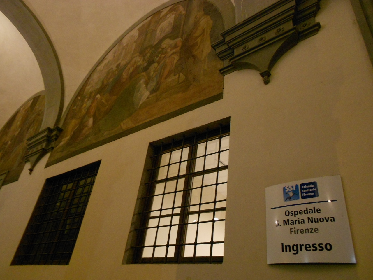 ドゥオモの裏手を歩いていたら、美術館らしき建物があったので近づいてみると、そこは病院でした。淡い照明に照らされた回廊にはフレスコ画があってびっくり。病院にまで芸術があるなんて、さすが世界遺産の街フィレンツェですね。