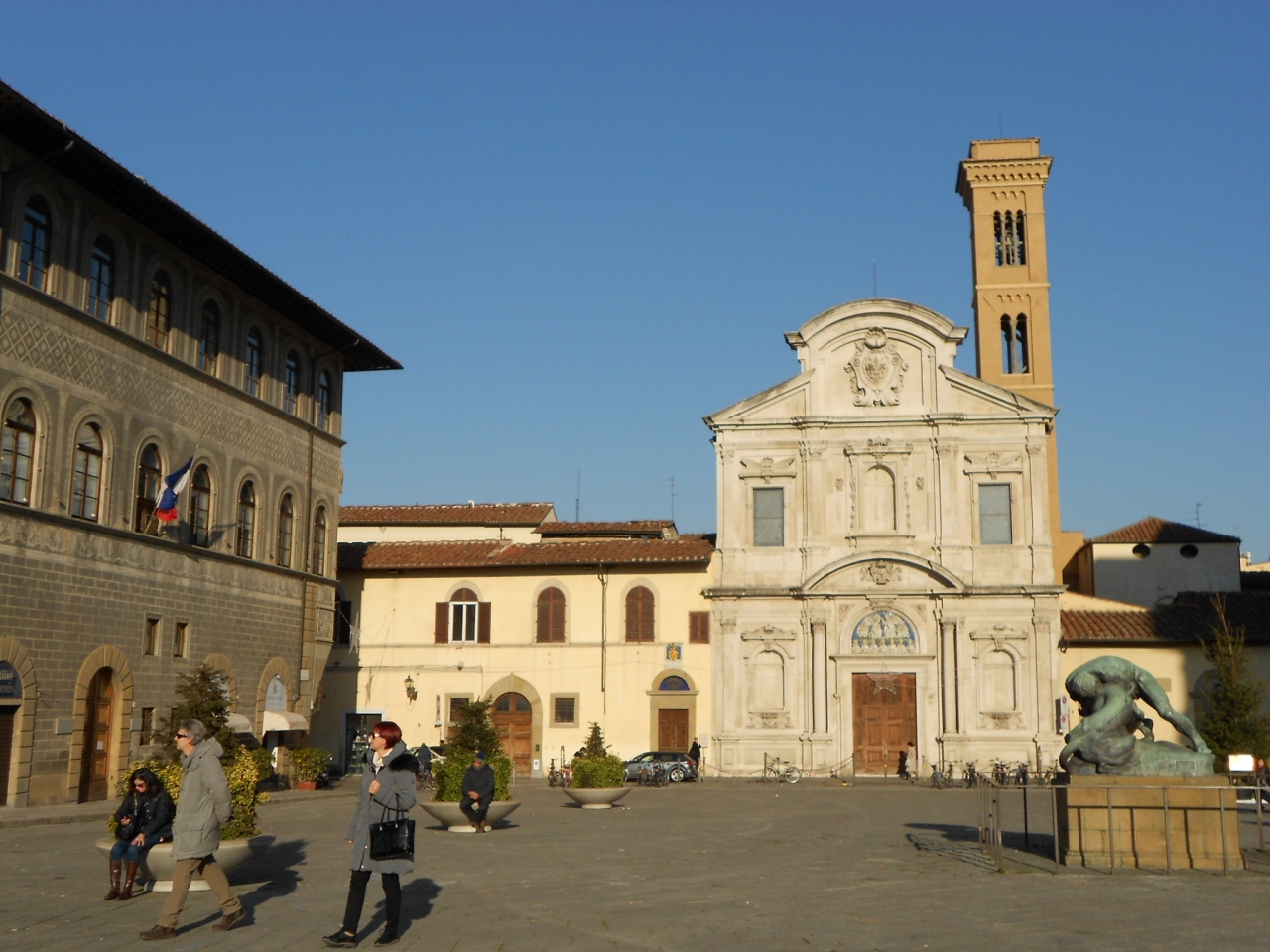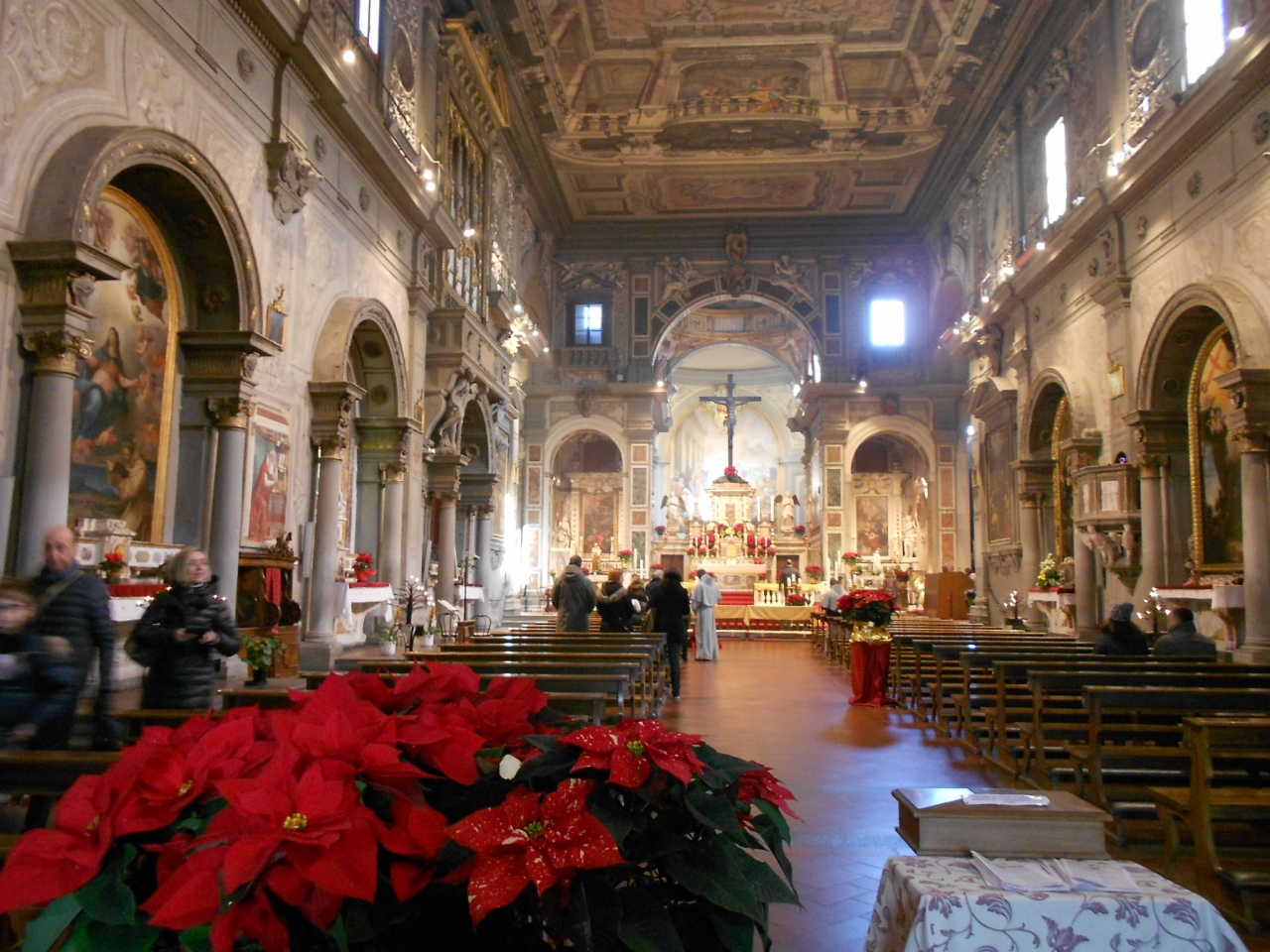 13世紀半ばに建てられたフィレンツェで最初のバロック様式のファサードと鐘楼。外観はとても素朴な感じですが、中に入ってみるととても素敵な教会でした。この日は1月1日でしたが、クリスマスの飾りつけがなされていて、ポインセチアの赤と緑がとても華やかでした。
