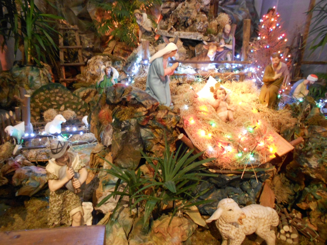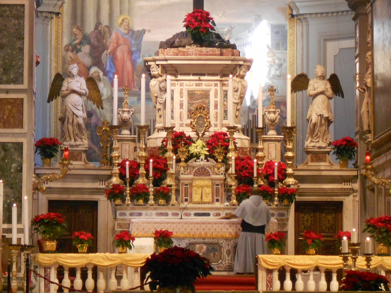 主祭壇には赤ちゃんキリストがいて、プレセーピオも展示されていました。堂内の壁面はフレスコ画や絵画で埋め尽くされ、さながら美術館のようでした。- 旅行時期
