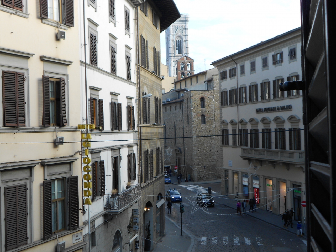 建物は6階建て。今回は5階の部屋でジョットの鐘楼が見えました。シングルを予約しましたが、ダブルベッドの広い部屋でアンティークの家具がありました。
