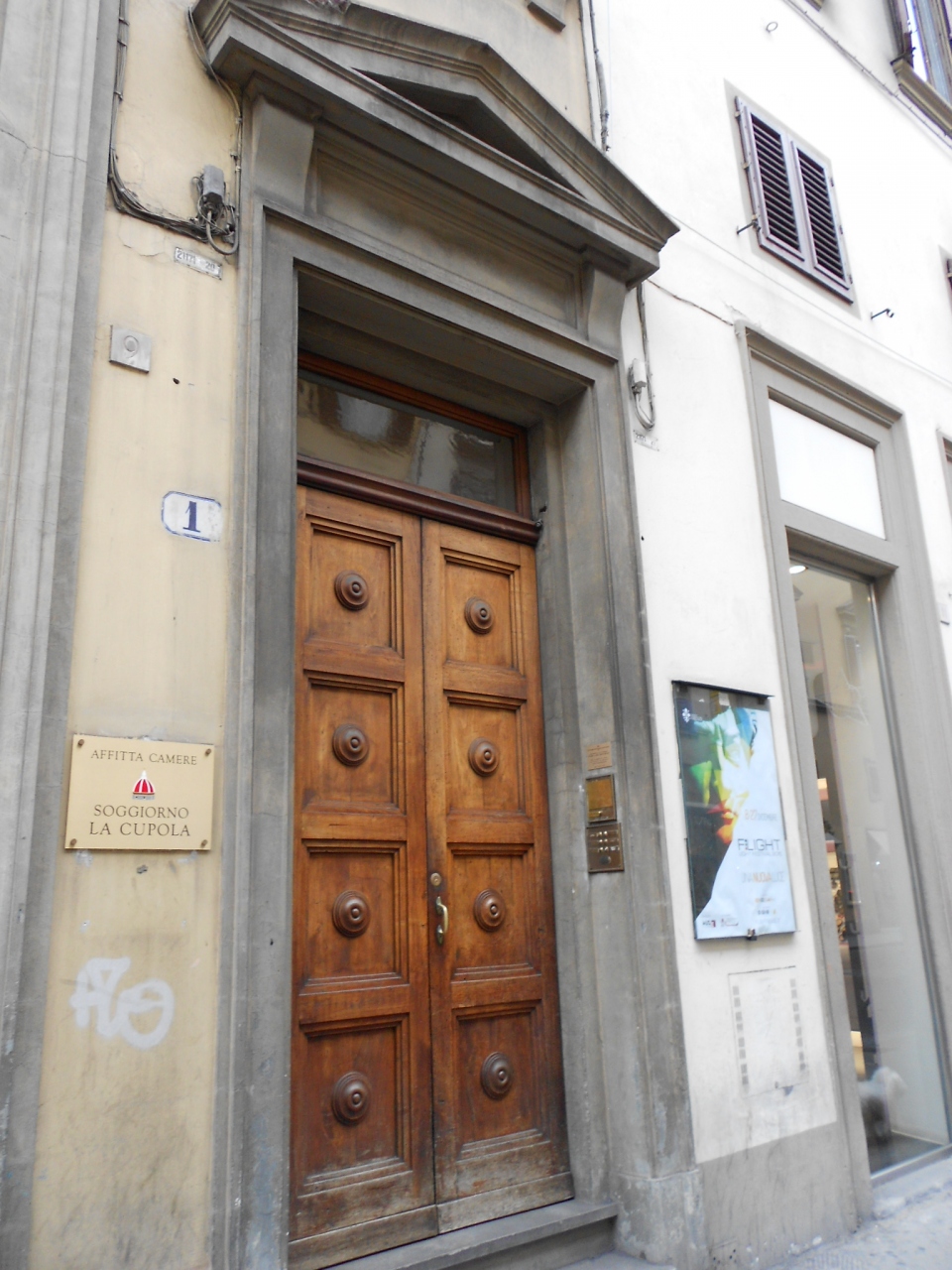 サンタ・マリア・ノヴェッラ駅からドゥオモへ行く大通りの丁度中間地点にあってどちらへも徒歩5分位の便利な立地です。5階建ての歴史ある建物のSecondo piano(日本では3階)にあって、ゲストハウスなので目立つ看板が無く場所を見つけるのに苦労しました。エレベーターは無く、階段を重い荷物を運ぶのに一苦労でした。宿の方は常時いるわけではなく、到着時間を予め連絡する必要がありました。鍵を3つ渡され、建物のドアの鍵、宿のドアの鍵、自分の部屋の鍵、それらを使い自由に出入り出来るのでフィレンツェの住人になったような、暮らしてる感が味わえて楽しかったです。