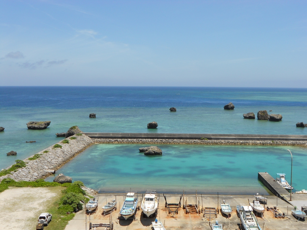 滑走路のすぐ脇の道路沿いの海はとても透明度が高く、潮が引いている時などは真っ白な砂浜が透けて見えるほどきれいです。