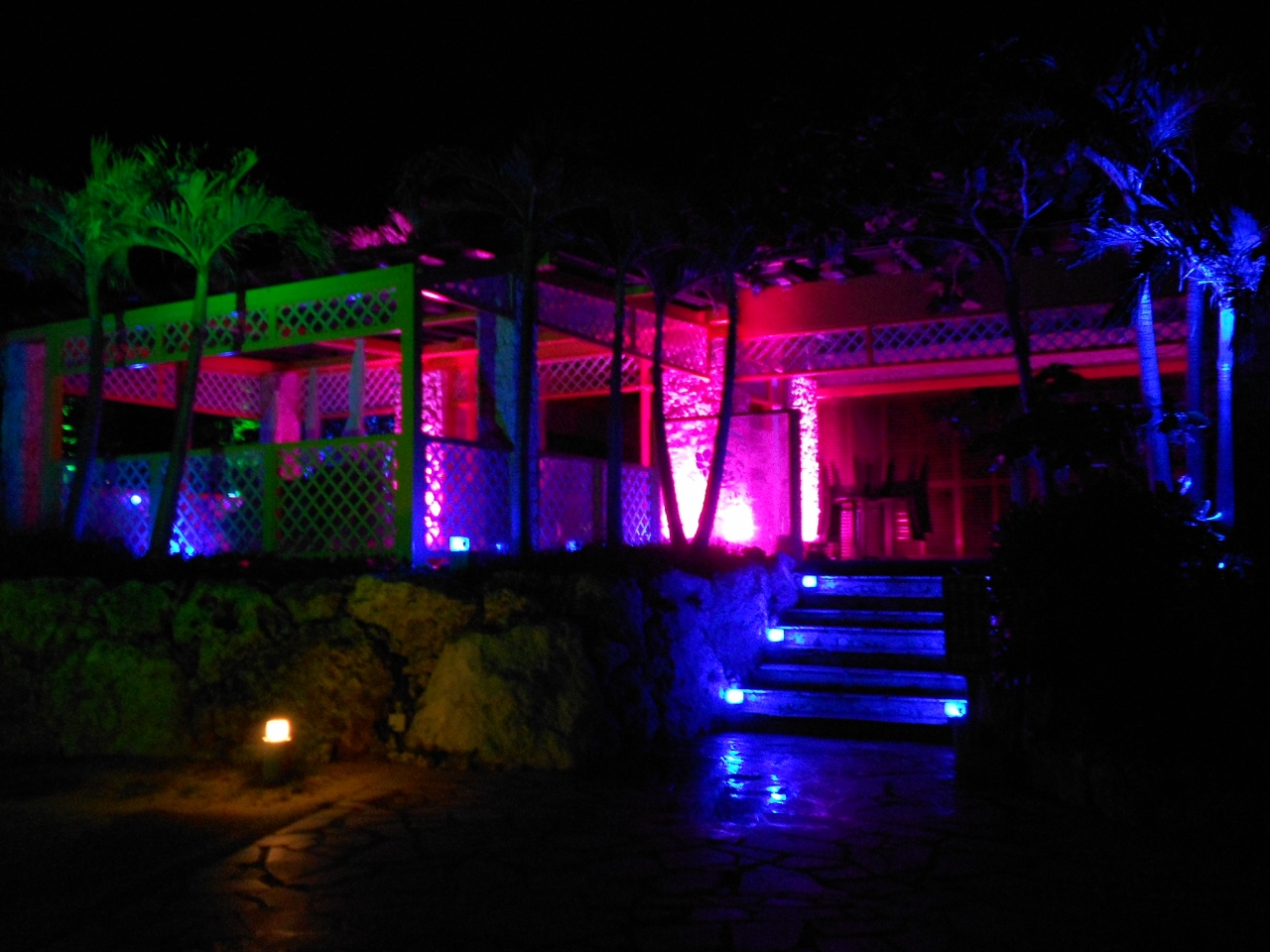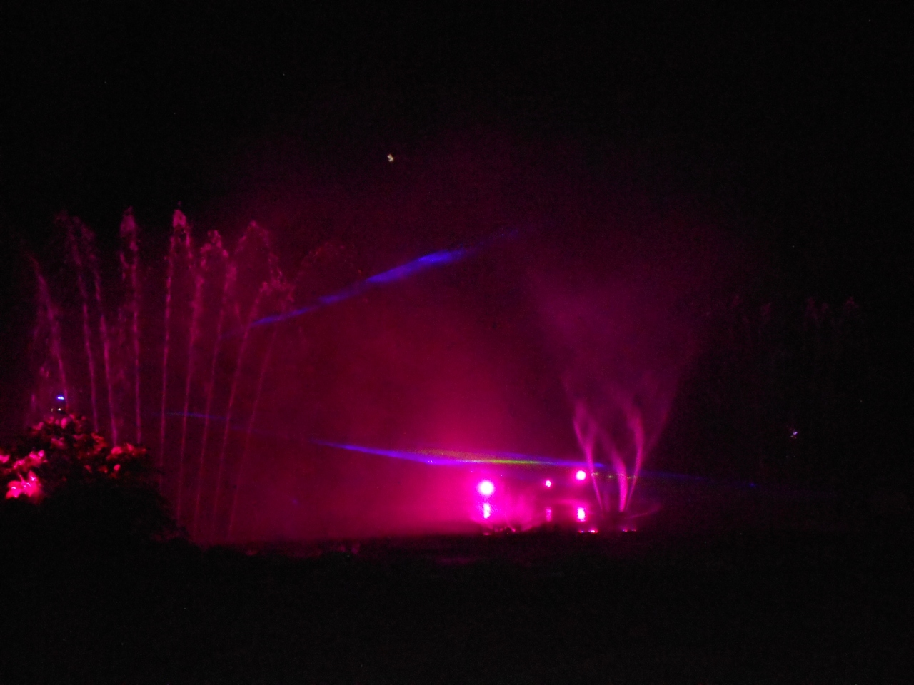 「シギラ・ウォーターイリュージョン、水と光と音のアート」を見に行ってきました。場所はシギラフィールドハウス前(シギラ温泉の隣り)、金・土限定で夜8時から15分間。噴水が様々に変化しレーザー光線と音楽のショーで、なかなか良かったです!