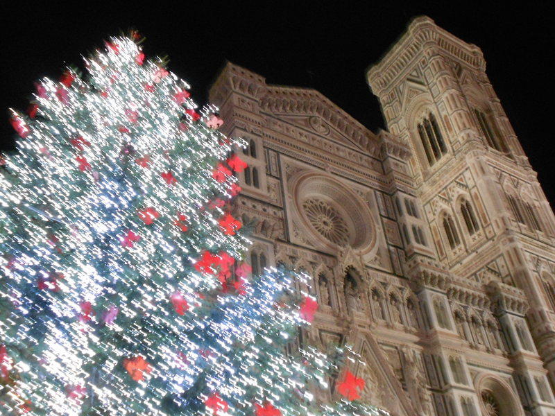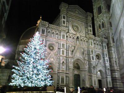 夜空に浮かび上がる白亜のドゥオモも必見です!シンプルなイルミネーションのクリスマスツリーがファンタジックでした。- 旅行時期