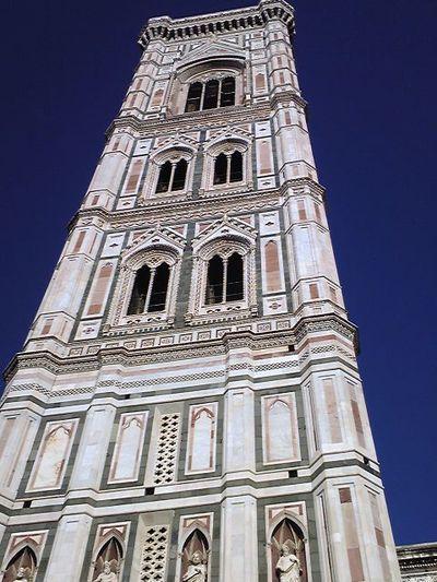 ドゥオモに寄り添うようにそびえ立つジョットの鐘楼Campanile di Giotto。ドゥオモと同じ白・ピンク・緑の大理石がとても美しく、間近で見上げるとその大きさに圧倒されます。
