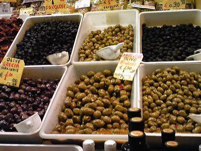 1階はお手頃な値段で食事が楽しめます。大きなオリーブが量り売りで売っていて、めちゃ美味しかったです。