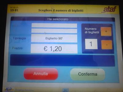 今回は、Biglietto 90分有効1.20ユーロを選択。良ければ「 Conferma 」をタッチします。