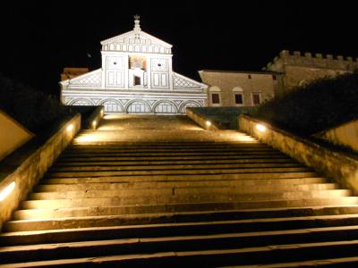 広場から階段を登っていくと真っ暗な夜空に浮かび上がる白亜の美しい教会!教会前からはフィレンツェの夜景がまるで宝石箱のようでした。