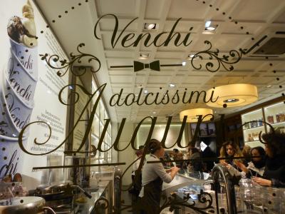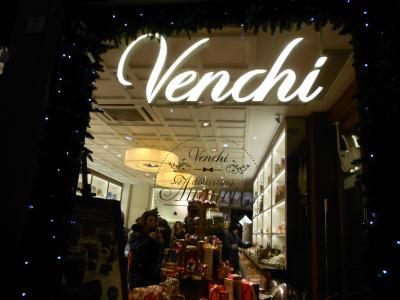 アルノ川沿いから、ポンテ・ヴェッキオ、シニョリーア広場の前の通りからロッジアの先、右側に Venchi のチョコレートショップ発見!