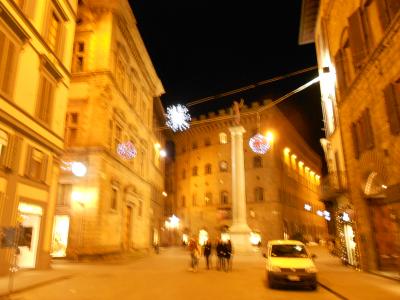 15世紀からの歴史的な建物が並ぶトルナブォーニ通りは高級ブランド店が並ぶ優雅な通り。高い柱(コロンナ)が立つ小さなサンタ・トリニタ広場の円柱はローマのカラカラ浴場から運ばれたものとか。