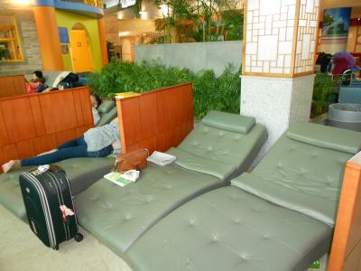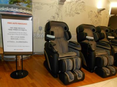 旅客ターミナル4階。横になれるリクライニングソファーがありました。そしてなんと!無料のマッサージチェアーがありました!足のふくらはぎと足の平を圧迫するリフレクソロジーもあって、チョ~気持ち良かった~!