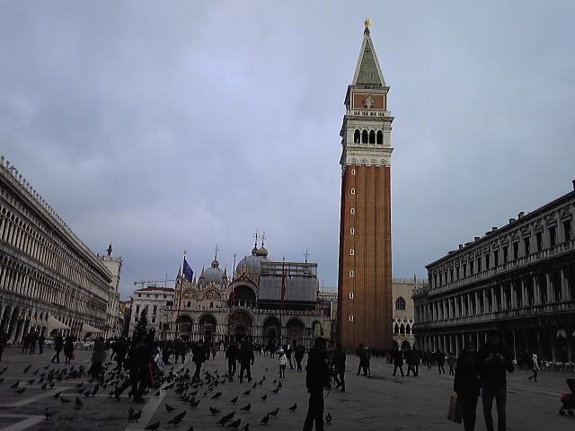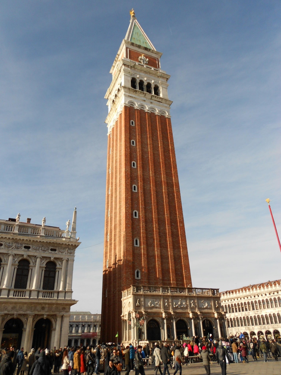 サンマルコ広場、サンマルコ寺院の横で天高くそびえる鐘楼。