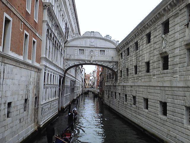 ドゥカーレ宮の地下牢獄は満水時には水牢獄になったと言われ、この橋を渡ると二度とこの世に戻って来られないと言われ、橋の小窓からこの世に別れを惜しみ溜息をついたと言われる。