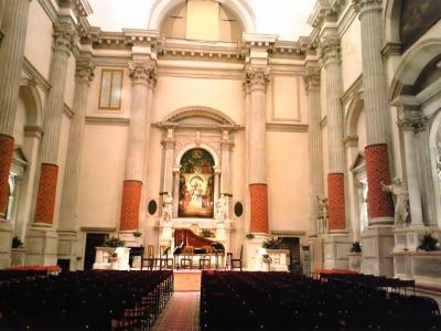 アカデミア橋 Ponte de l'Accademia からほど近いサント・ステーファノ広場 Campo Santo Stefano にあるサン・ヴィダル教会 Chiesa di S. Vidal。ヴェネツィアの教会としては珍しく明るくすっきりとした堂内です。