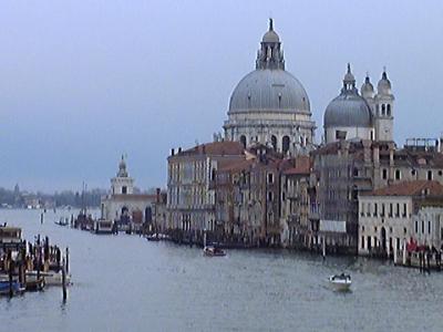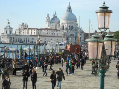 対岸には水面に浮かんでいるかのようなサン・ジョルジョ・マッジョーレ聖堂。右手には丸い大きなクーポラと真っ白な大理石が美しいサンタ・マリア・デッラ・サルーテ聖堂。