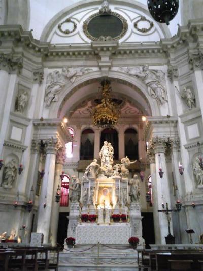 外観は白大理石が美しく、教会内は薄暗く神聖な雰囲気でした。ヴェネツィアの教会は有料のところが多いですが、ここは無料で見学出来ました。