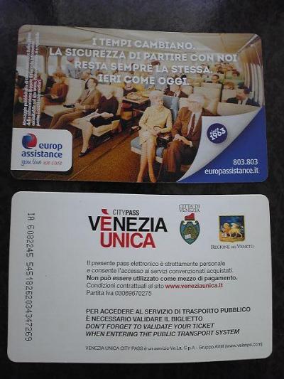 切符は「VENEZIA UNICA」と書かれたテレホンカードサイズの紙のカードで、行先も料金も何も書いてなかったので、え?!と思って慌てて窓口の人に聞くと確かにこれがバスの切符だと。領収書を見ると「 Aeroporto - Venezia AR 」(空港ーヴェネツィア往復)と書いてありました。バス乗り場は、到着ロビーから外に出て、タクシーレーンの道路を渡って進むとバスレーンがあって「市バス5番乗り場」から。