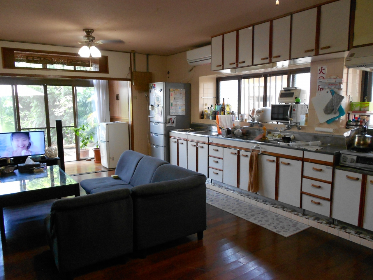 電子レンジ・炊飯器(お米販売有り)・トースター・鍋類・食器・調味料・サランラップ・アルミホイル、大きな冷蔵庫。