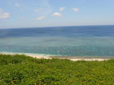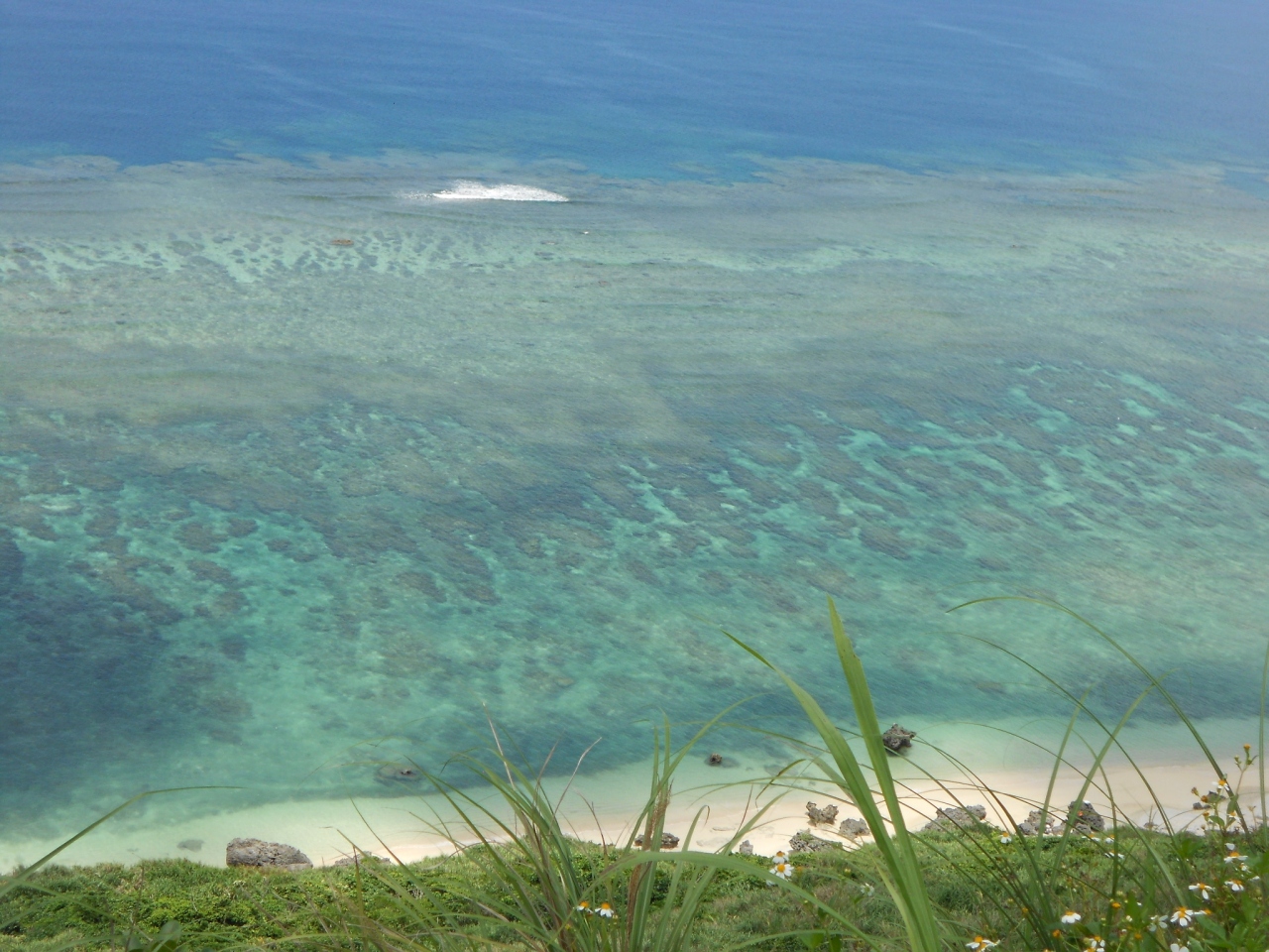 ビーチへ下りる途中の丘の上からは、宮古ブルーの美しい海と珊瑚礁がとってもきれいです。
