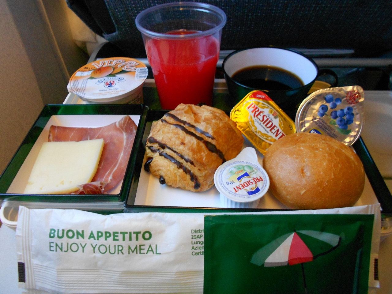 やっぱイタリアの旅はアリタリアでしょ!機内でもイタリアモードだし。