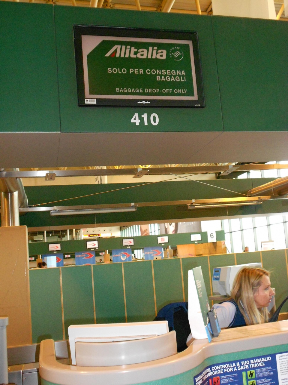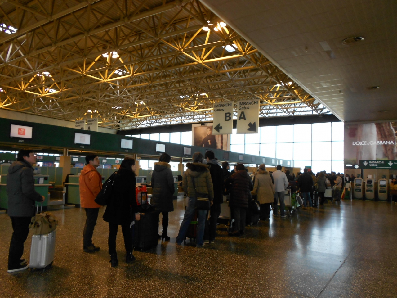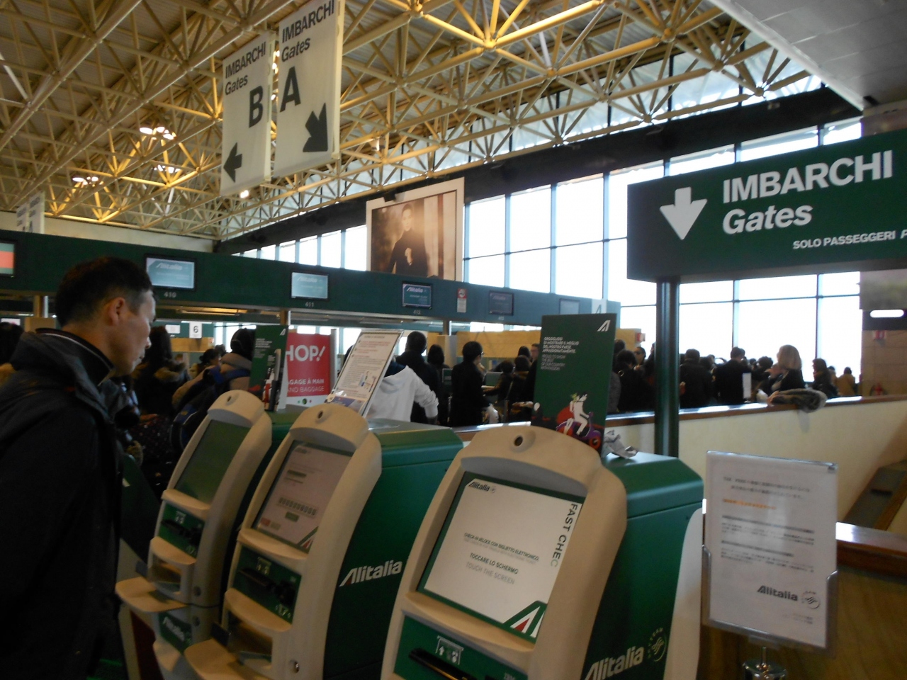 今回アリタリアは北ウイングなので1階到着ロビーから外に出て右に歩くこと5分。「31番」はいちばん端なので端から端まで歩かなければなりませんでした。ちょっと遠いので荷物がたくさんあると大変です。