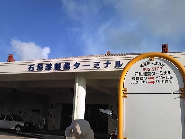 新石垣空港からは東運輸バス空港線系統10番に乗ると、離島桟橋ターミナル目の前のバス停に停まるので便利です。空港からは1時間弱かかるのがネックです。