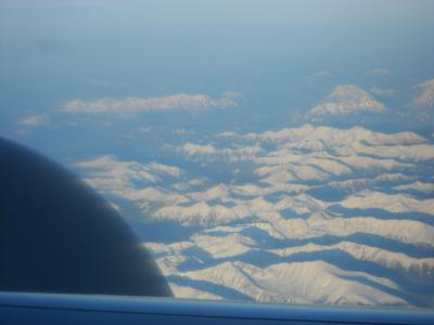 座席は景色が見たいので窓側を選択したのですが、なんと20Aは翼の上!ショック!(後方、次のブロック31番からが翼が無い席。)足元に金属の箱があって足が伸ばせず窮屈~!この箱は真ん中と通路側の席には無かった。エコノミーはひざが前のシートにくっつく位狭く、席を立つ時とっても大変でした。
